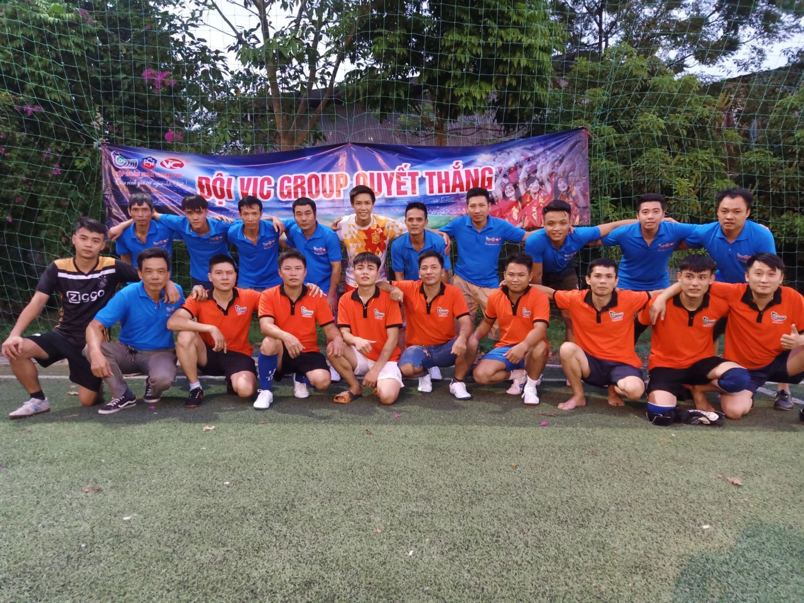 Trận thi đấu bóng đá giữa hai đội bóng nam bộ phận kho xưởng và phòng kinh doanh tổng hợp