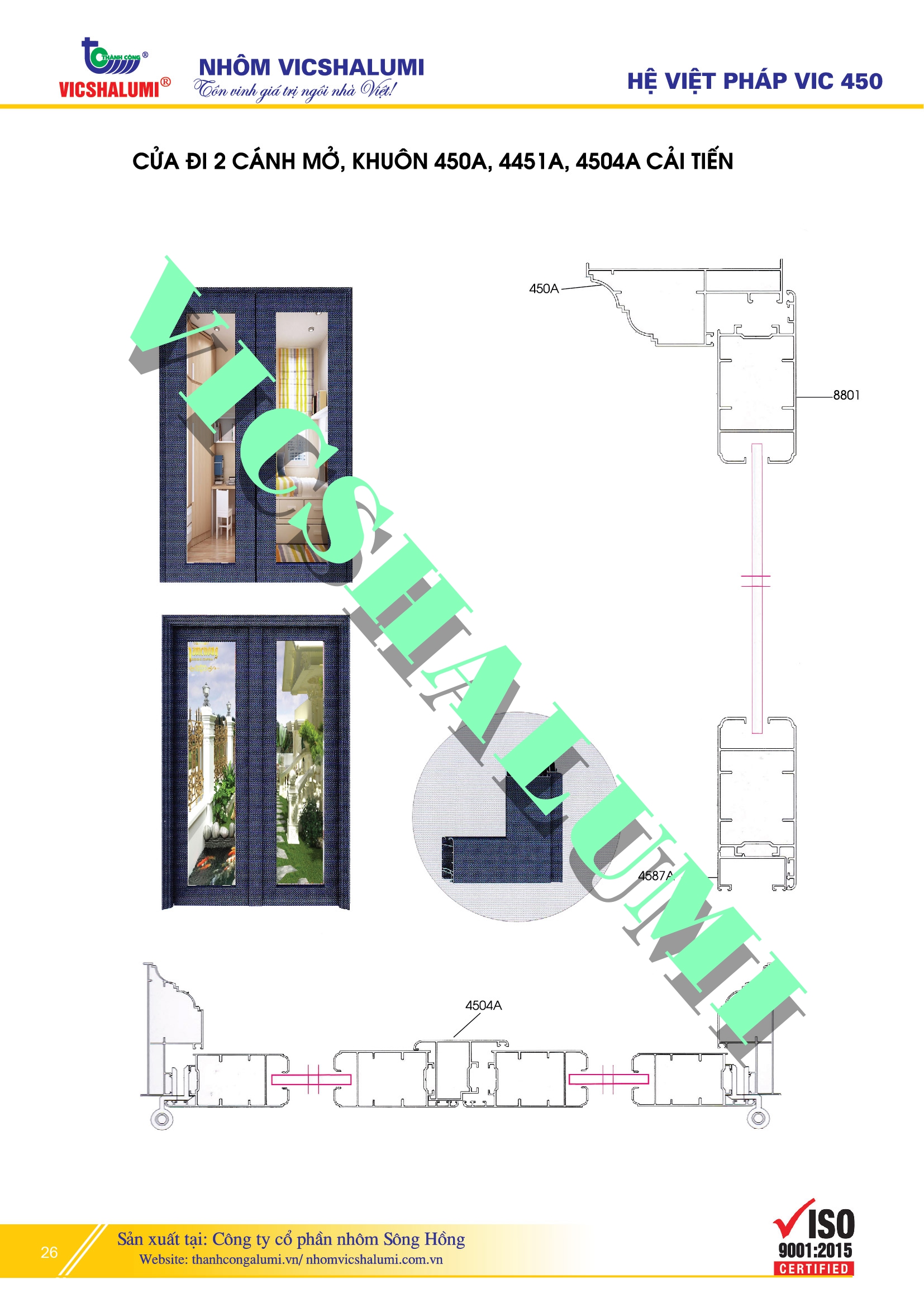 Cửa Đi 2 Cánh Mở, Khuôn 450A, 4451A, 4504A Cải Tiến