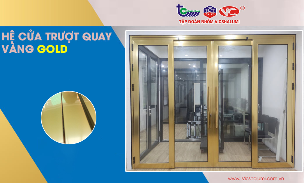 CỬA TRƯỢT QUAY MÀU VÀNG GOLD – TIỆN KIỆM DIỆN TÍCH KHÔNG GIAN NHÀ BẠN