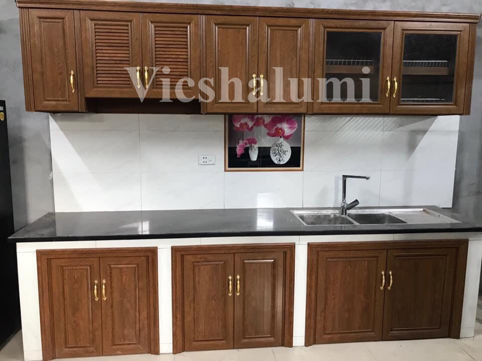 Vicshalumi chuyên thiết kế thi công: Tủ bếp nhôm kính cao cấp hiện đại theo xu hướng mới nhất hiện nay, tủ bếp nhôm kính sơn tĩnh điện, tủ bếp khung nhôm kính vân gỗ, tủ bếp kính màu cường lực