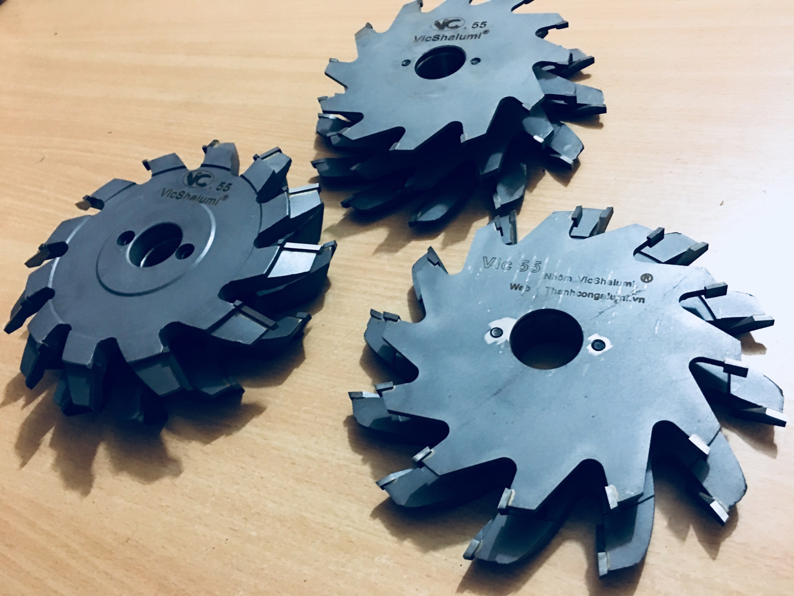 Lưỡi Phay Vicshalumi 55 gồm 3 lưỡi: -1 lưỡi phay khung. -1 lưỡi phay cánh sập rời. -1 lưỡi phay cánh sập liền.