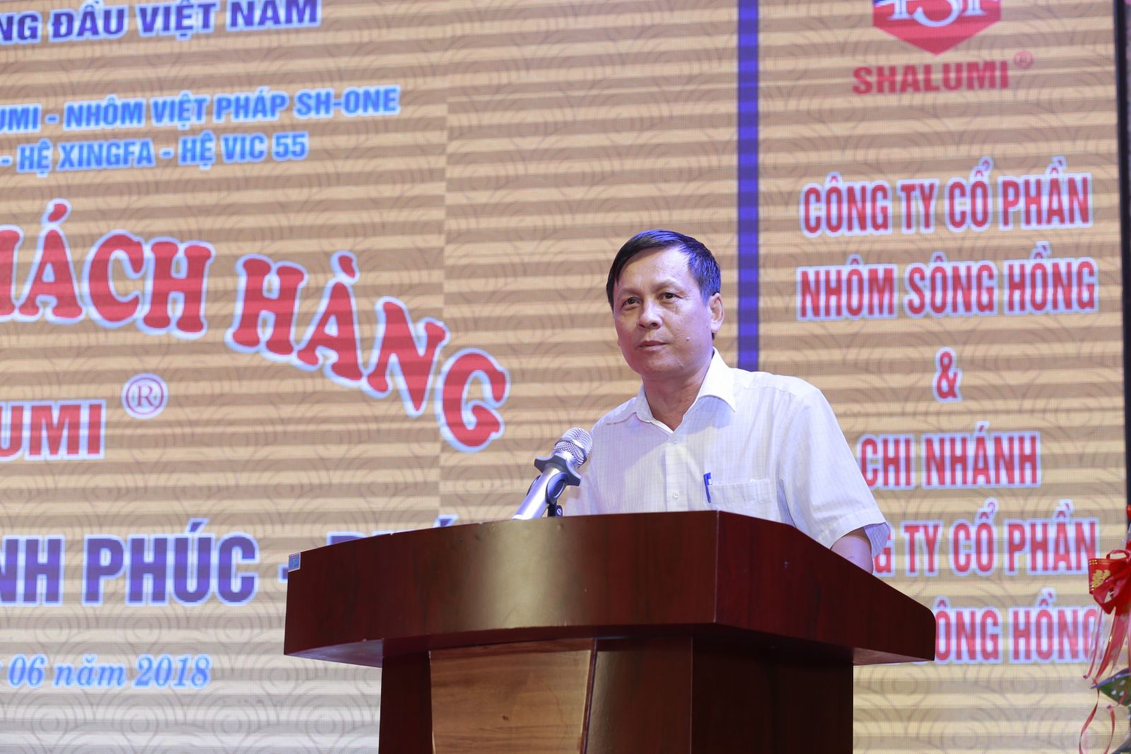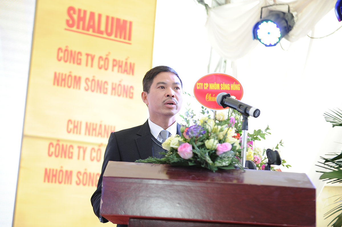 Tổng giám đốc nhà máy nhôm Sông Hồng phát biểu cảm ơn quý khách hàng đã đồng hành cùng thương hiệu Shalumi trong năm vừa qua