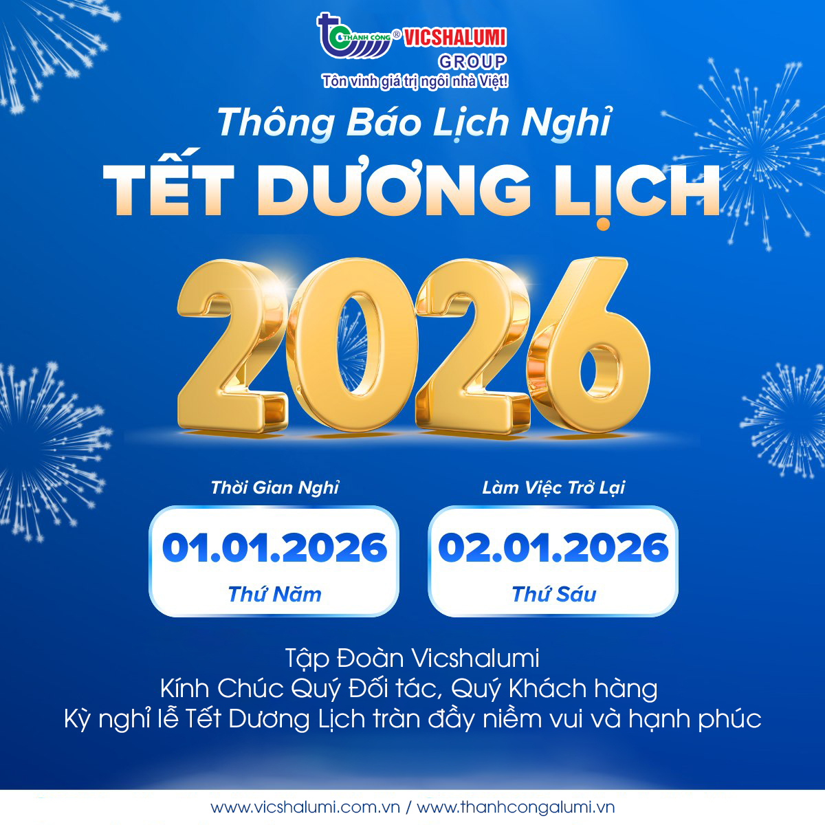 Tập Đoàn Vicshalumi Thông Báo Lịch Nghỉ Tết Dương Lịch 2026