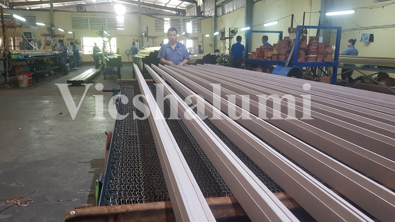 Các thanh nhôm sấy để có lớp nền vân gỗ