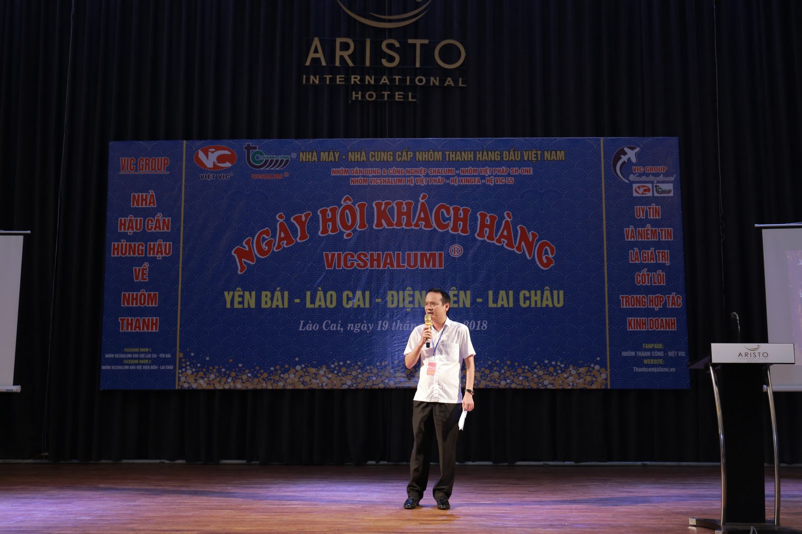 Sự kiện lần này được Vic Group tổ chức tại khách sạn Aristo International ngay giữa trung tâm Thành Phố. Quy tụ gần 300 Quý vị khách hàng và Đại Lý khắp 4 Tỉnh Yên Bái - Lào Cai - Điện Biên - Lai Châu.