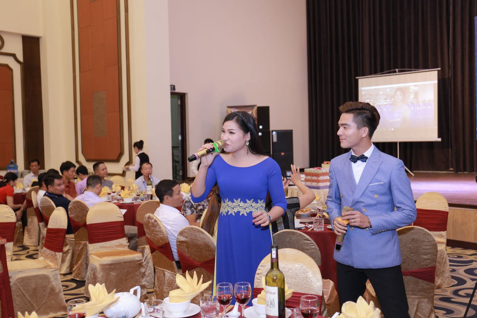 Ca sĩ Hữu Tuấn - Bùi Thúy hát khai mạc chương trình.