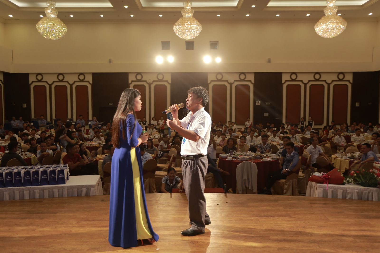 Ca sĩ giao lưu cùng đại diện Đại Lý tại chương trình.