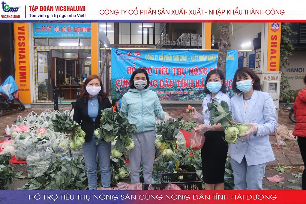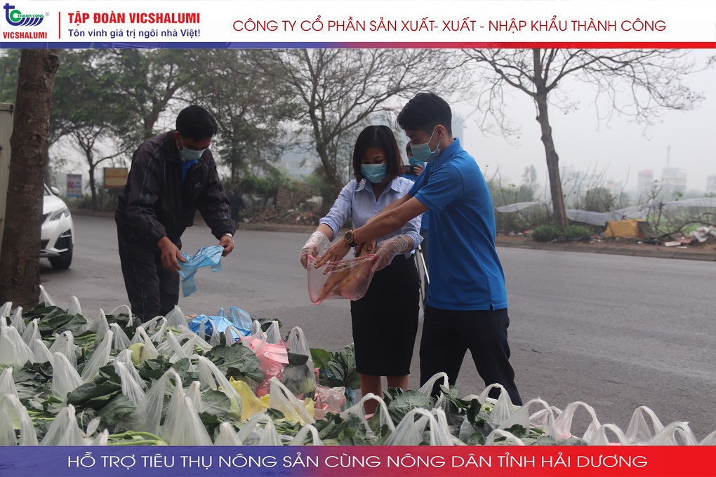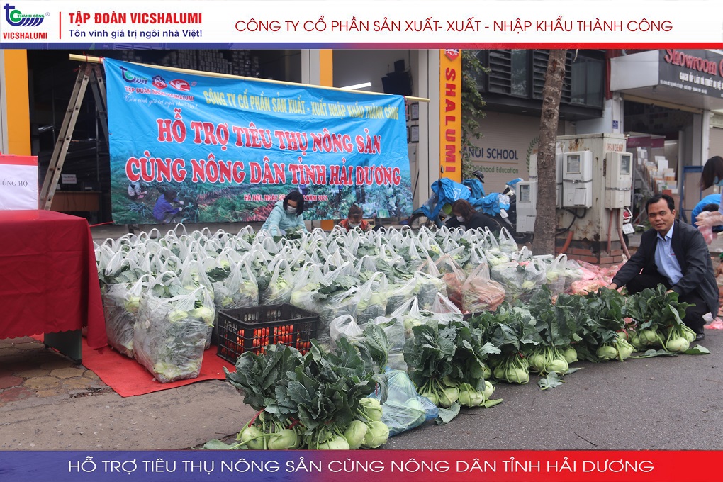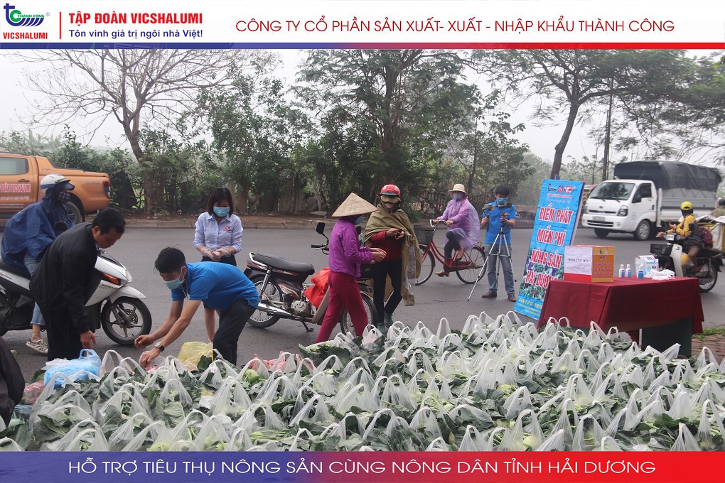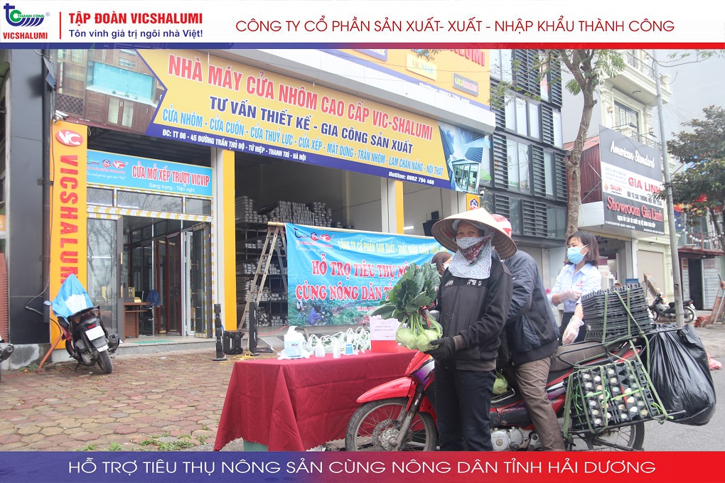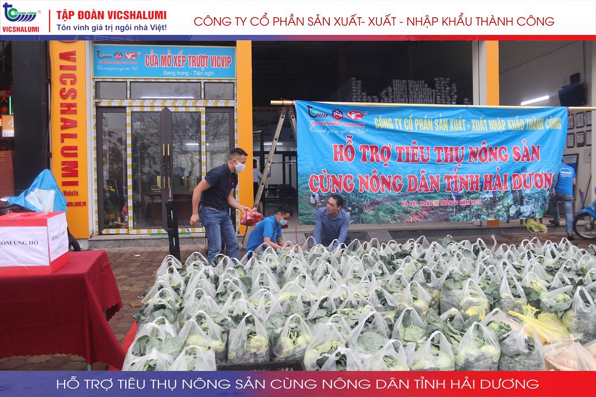 Trước tình hình này, Tập đoàn VICSHALUMI liên tục thu mua nông sản phát miễn phí ủng hộ nông dân Tỉnh Hải Dương. Đây là lần thứ 3 Tập đoàn VICSHALUMI phát miễn phí nông sản như xu hào, bắp cải, củ cải, cà rốt, cà chua, ổi. Điểm phát miễn phí nông sản lần 3 được phát tại. Nhà máy cửa nhôm VIC - SHALUMI. Địa chỉ: TT06-45 Đường Trần Thủ Độ, Thanh Trì, Hà Nội