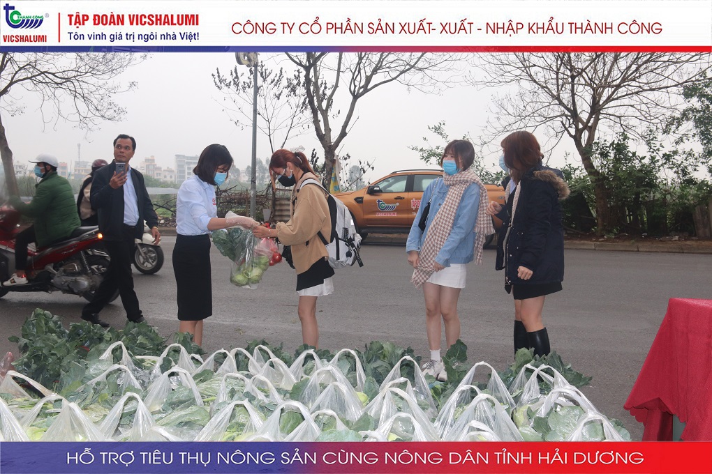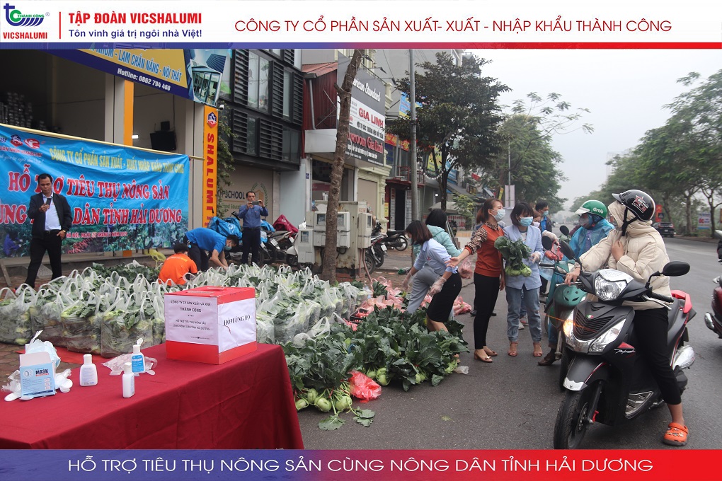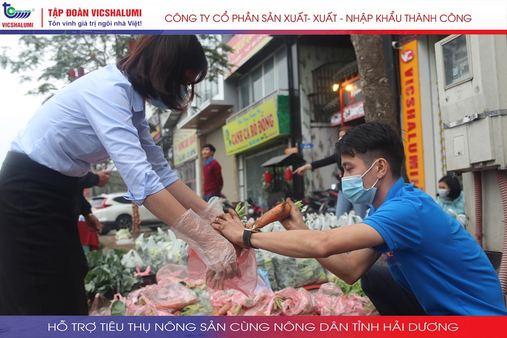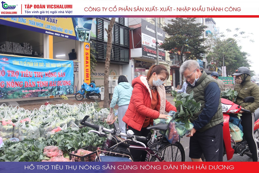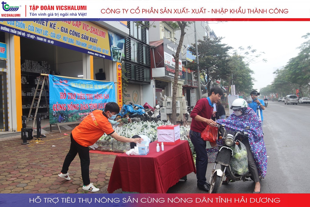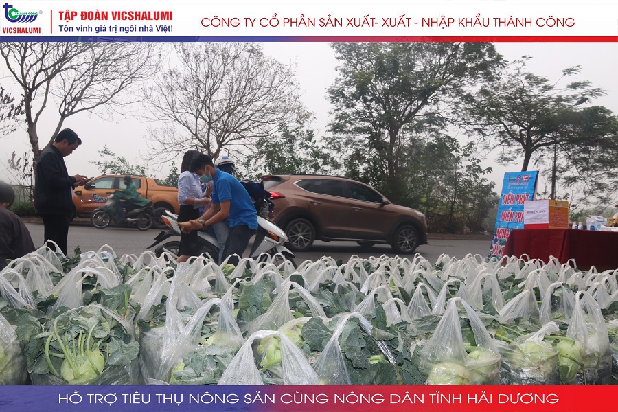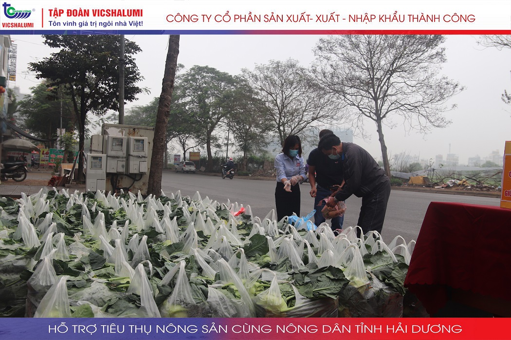 Trước tình hình này, Tập đoàn VICSHALUMI liên tục thu mua nông sản phát miễn phí ủng hộ nông dân Tỉnh Hải Dương. Đây là lần thứ 3 Tập đoàn VICSHALUMI phát miễn phí nông sản như xu hào, bắp cải, củ cải, cà rốt, cà chua, ổi. Điểm phát miễn phí nông sản lần 3 được phát tại. Nhà máy cửa nhôm VIC - SHALUMI. Địa chỉ: TT06-45 Đường Trần Thủ Độ, Thanh Trì, Hà Nội