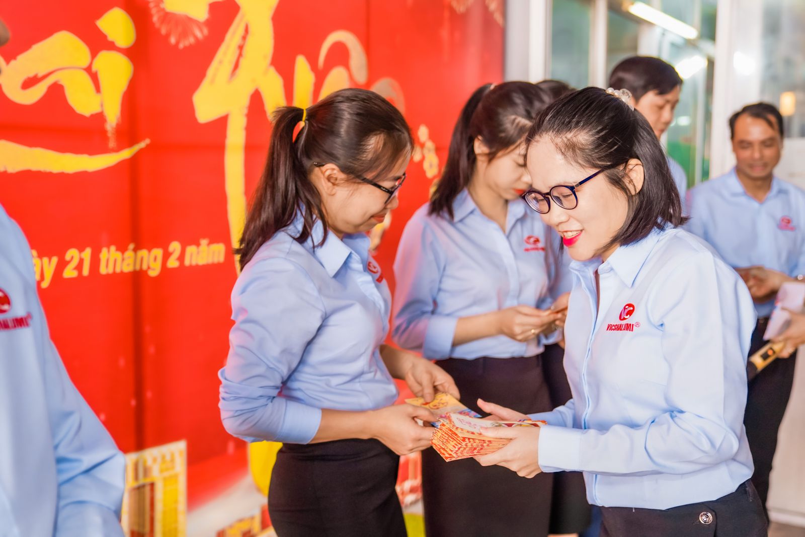 Trong niềm hân hoan ngày đầu xuân mới, CB-CNV cùng chúc mừng và hô vang: "Năm mới - Sức khỏe - Thành công". Bên cạnh những lời chúc tốt đẹp, toàn thể cán bộ nhân viên công ty còn nhận được những phong bao lì xì may mắn đầu năm, khởi đầu một năm nhiều thuận lợi.