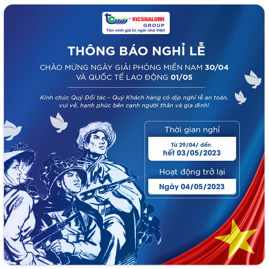 Tập đoàn Vicshalumi Thông báo lịch nghỉ lễ 30/4-01/05 năm 2023