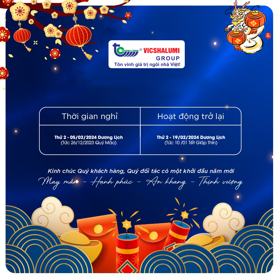 Tập đoàn Vicshalumi thông báo lịch nghỉ tết nguyên đán Giáp Thìn 2024