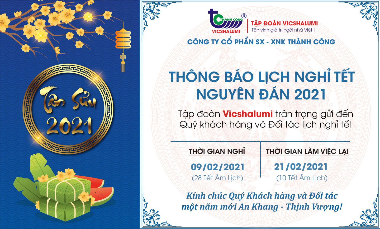 Tập đoàn VICSHALUMI trân trọng gửi tới Quý Khách hàng, Đại lý lịch nghỉ Tết Nguyên Đán 2021 như sau: