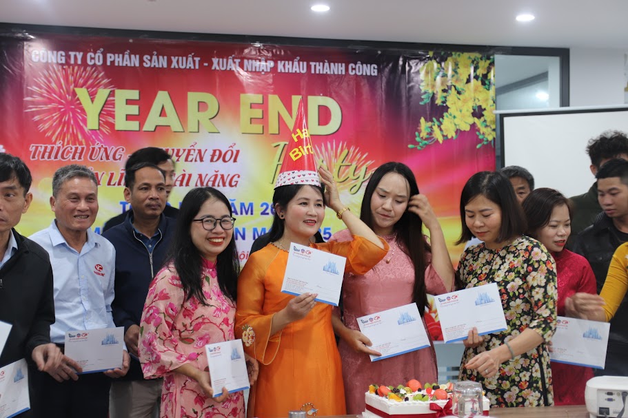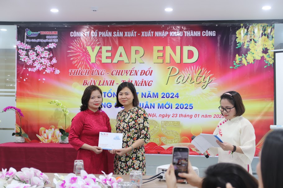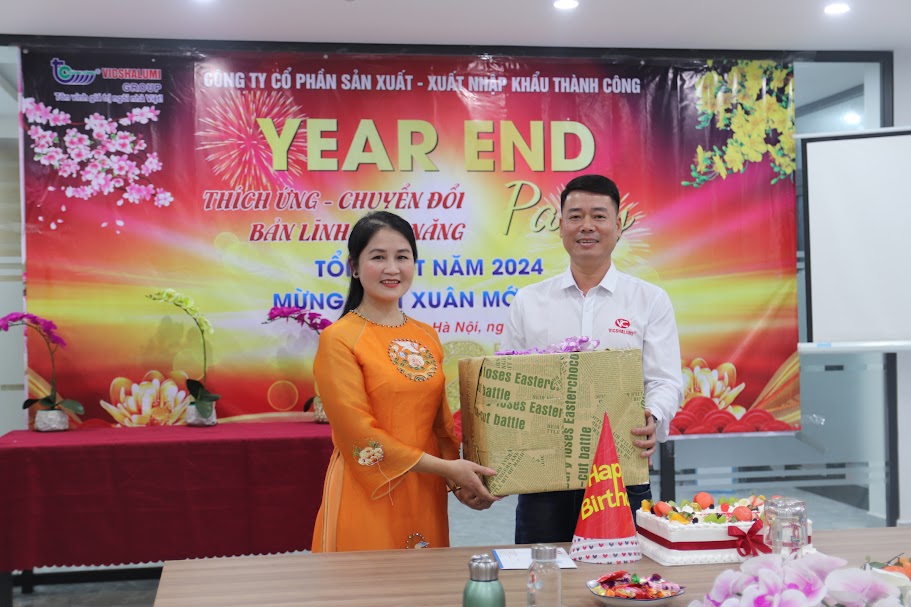Tại buổi tiệc, Bà Phạm Thị quỳnh Thụ – Chủ tịch HĐQT Công ty đã phát biểu, nêu bật những thành tích đạt được trong năm 2024, và biểu dương khen thưởng những cá nhân, tập thể có thành tích xuất sắc trong phong trào thi đua. Đồng thời tập đoàn cũng tổ chức sinh nhật cho các thành viên trong công ty sinh nhật quý 1 và quý 4.