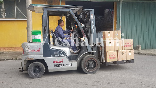 Ke nhôm được cắt và sắp xếp cho vào thùng đóng gói