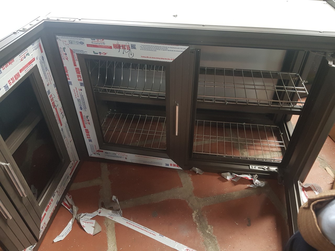 Tủ bếp nhôm Vic55 chống thấm nước không cần lo lắng về việc bát đũa hay dụng cụ nhà bếp còn nước…không lo sợ ảnh hưởng đến tuổi thọ hoạt động của sản phẩm hay bị hư hỏng. Khi nước đọng trong tủ chỉ cần lau chùi sạch sẽ thì đều có thể trả lại vẻ sáng bóng của tủ bếp