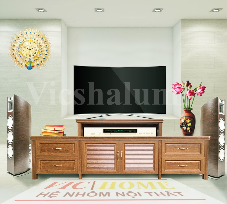 Mẫu kệ tivi được thiết kế lắp đặt bằng nhôm nội thất Vic home
