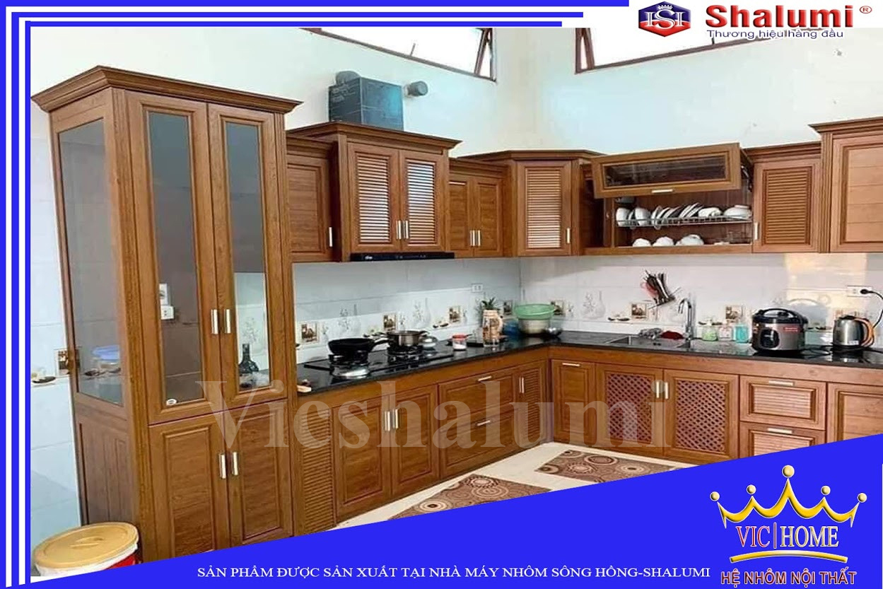 Việc sử dụng nhôm hệ nội thất làm tủ bếp sẽ giúp vấn đề vệ sinh, lau chùi được thực hiện dễ dàng hơn bao giờ hết.